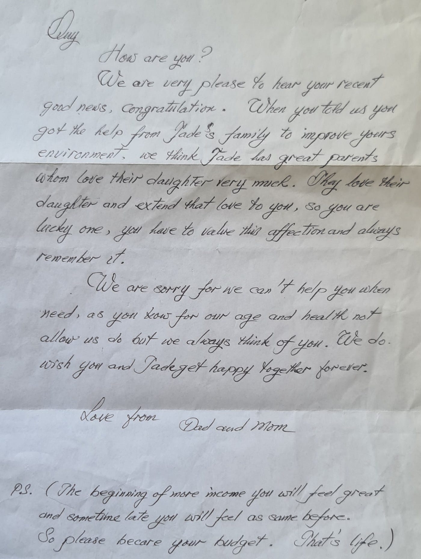 The broken English, impeccably written in beautiful handwriting, reminds me she is far from home yet never lost her poise, of the staggering sequence of events that brought us here.